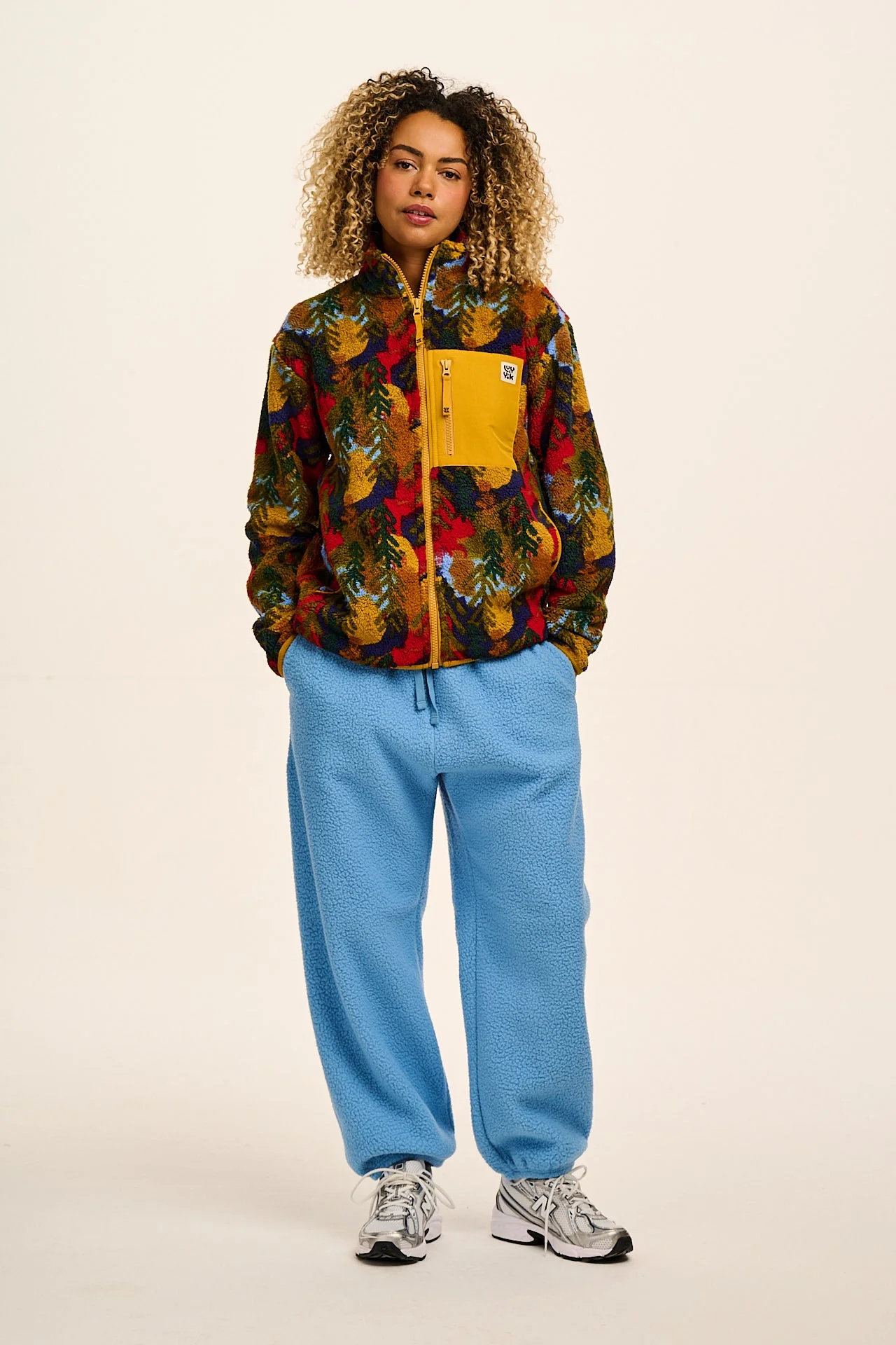 Our Harper Borg Fleece Jacket in Alpine Trees, lined with polar fleece for extra warmth.