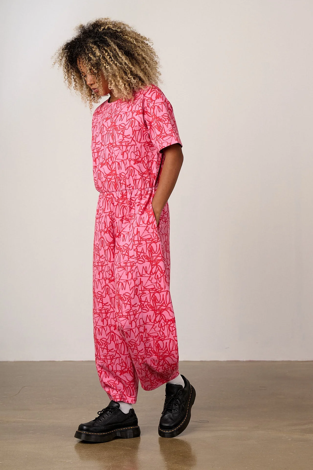 Nova - Barrel Leg Cotton Jersey Jumpsuit in Pink Graffiti